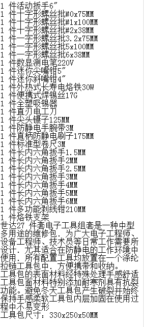 首頁>產(chǎn)品中心>手工具組套>電子電訊工具套裝>世達27件電子工具組套