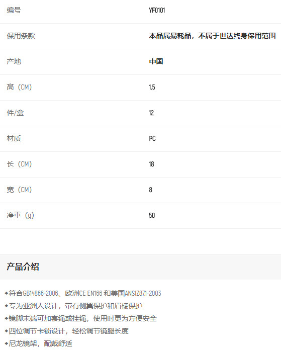 產(chǎn)品名字:世達防沖擊眼鏡