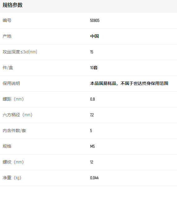 產(chǎn)品名字:世達5件套高速鋼復(fù)合絲錐M5*0.8mm
