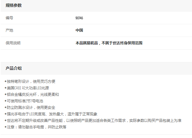 產(chǎn)品名字:世達(dá)筆型手電筒