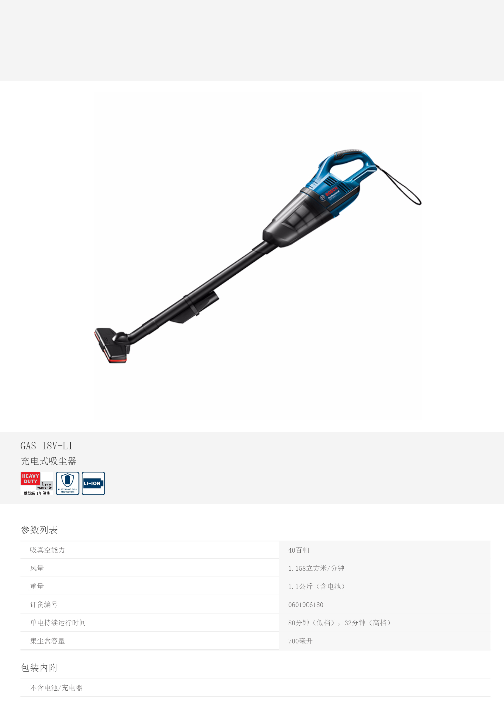 產(chǎn)品名字:博世吸塵機GAS18V-LI