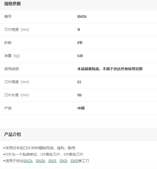 產(chǎn)品名字:世達(dá)10件美工刀片8節(jié)