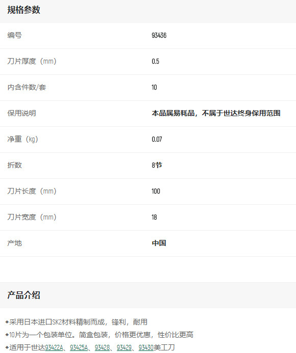 產(chǎn)品名字:世達10件套美工刀片8節(jié)