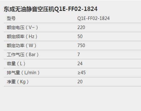 產(chǎn)品名字:東成無油靜音空壓機Q1E-FF02-1824