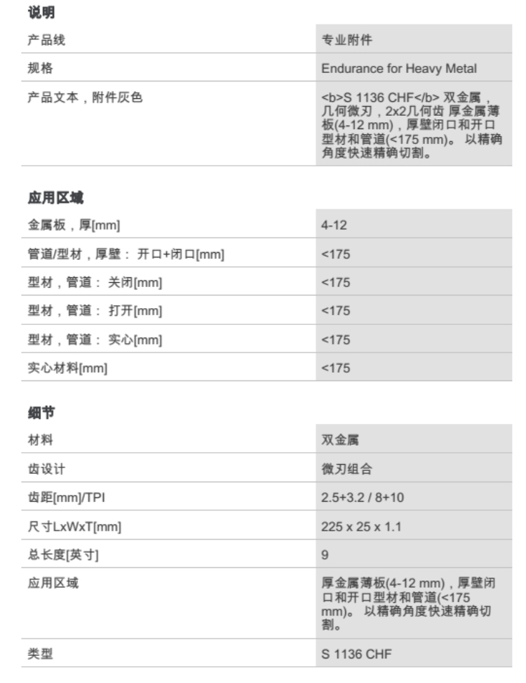 產(chǎn)品名字:博世馬刀鋸片S1136CHF
