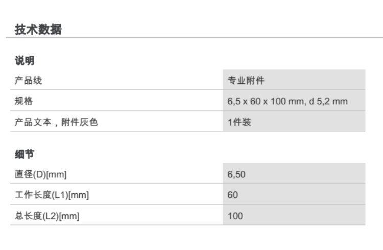 產(chǎn)品名字:博世沖擊石工鉆頭6.5*60*100